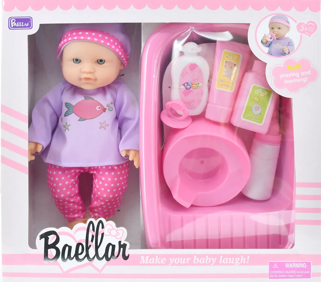 Moja knjižara Lutka beba devojčica za uzrast 3+ u slatkoj pidzamici spremna za kupanje. Uz lutku dolazi set sa kadicom,šamponima, flašicom i nošom.