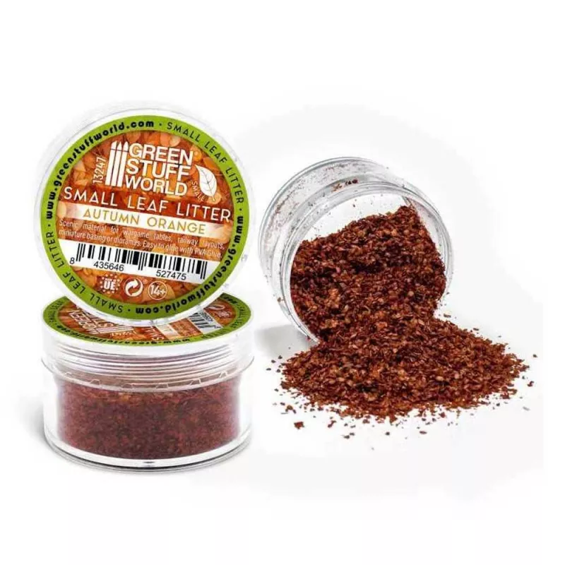 Prirodni materijal oblikovan gotovo savršeno kao minijaturno lišće, prosejano i filtrirano za sitne listiće – idealno za dekoraciju baza, diorama, drveća i žbunja. Lako se kombinuje sa drugim materijalima za realistične teksture. Pogodno za skale od 20 mm (1/72) do 45 mm (1/22). Jednostavno lepljenje uz PVA lepak, lepak za busene ili cijan-akrilatni lepak.